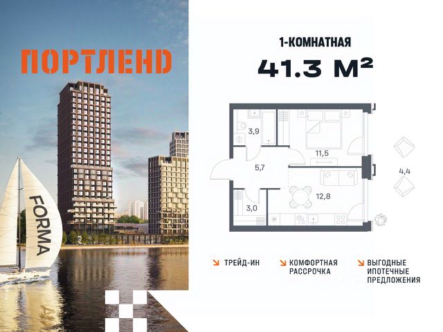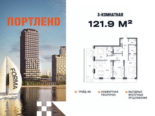 Цены указаны с условием 100% оплаты и стандартной ипотеки. Продаётся 2-к. квартира, 2 этаж в жилом комплексе бизнес-класса ПОРТЛЕНД от девелопера FORMA. ЖК расположен на берегу Москвы-реки в северной части района Печатники в акватории Южного речного порта. Основные преимущества проекта: • Самая протяженная береговая линия реки в Москве 13 км. • Вид на реку в сторону запада панорамные окна на самое широкое водное пространство Москва-реки (900 м) и на закат. • 95% квартир с видом на воду. • К ПОРТЛЕНД не примыкает крупных автомагистралей - отсутствие фонового шума дорог. • В перспективе ближайших 11 лет на территории района запланировано грандиозное преобразование и комплексное развитие. • Собственная набережная длиной 412 м., которая после завершения строительства сомкнется с эко-парком Печатники. • Прямой выход к воде и отсутствие проезжей части между ПОРТЛЕНД и береговой линией. • Инфраструктурное разнообразие: супермаркеты, крупные торговые центры, рестораны, кафе, фитнес-клубы, бьюти-салоны, компании сферы услуг и многое другое. • Собственная школа на 300 мест и детский сад на 275 мест. • Паркинг на 650 м/м • Транспортная вседоступность: метро, авто, велосипед, речной трамвай, канатная дорога • 15 мин. пешком до м. Печатники, 15 мин. на авто до ТТК, 20 минут на авто до Садового кольца