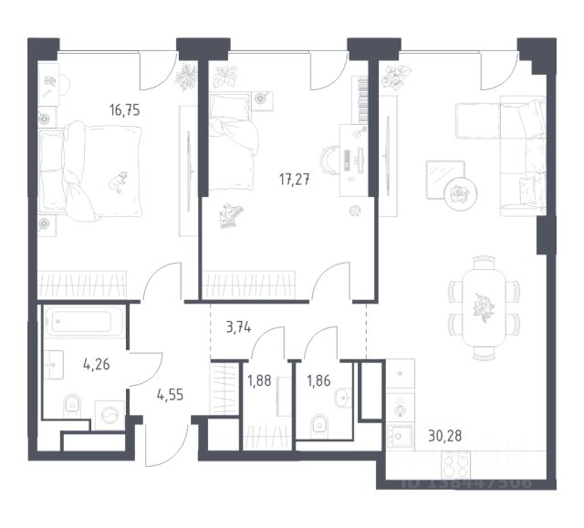Строим кварталы для жизни с заботой о будущем. Предлагается 3-комнатная квартира комфорт-класса площадью 83,13 кв.м в корпусе 2 на 2-м этаже, в жилом комплексе "Квартал Домашний". Застройщик сдает квартиры с отделкой в нескольких вариантах: предчистовая, готовая или вариант без нее. Последний подойдет тем, кто хочет создать свой уникальный интерьер и ничем себя не ограничивать. А если не хочется тратить время на ремонт, можно выбрать опцию — с отделкой. Перед тем как отдать ключи, застройщик установит натяжные потолки, поклеит обои под покраску, положит ламинат светлых тонов, а в санузлах — керамическую плитку и керамогранит. Приобрести квартиру возможно по специальным акциям от застройщика, с текущими условиями акций можно ознакомиться в блоке "Акций". Цена динамическая и может отличаться, уточняйте актуальность у застройщика. "Квартал Домашний" находится в Марьино — всего 7 минут пешком до МЦД-2 "Курьяново". Рядом с домом — набережная Москвы-реки. Внутренняя инфраструктура проекта продумана до мелочей: от супермаркетов до кафе и салонов красоты. В "Квартале Домашнем" можно выбирать свою высоту — в комплексе есть корпуса от 7 до 19 этажей. Среди планировочных решений — просторные кухни-гостиные, гардеробные, постирочные, лоджии и угловые окна. "Квартал Домашний" — это: 1. До станции МЦД-2 "Курьяново" — 7 минут пешком 2. До станции метро "Марьино" — 7 минут на машине 3. До парка 850-летия Москвы — 5 минут пешком 4. До парка "Борисовские пруды" — 15 минут на машине 5. До музея-заповедника "Царицыно" — 20 минут на авто 6. Музей-заповедник "Коломенское" — для фотосессий и прогулок 7. Европейская архитектура с фасадами природных оттенков: песочного, серого, зеленого, терракотового 8. Школа со стадионом, 2 детских сада — на территории квартала 9. Магазины, кафе и салоны красоты на первых этажах домов 10. Приватные дворы без машин 11. Подземный паркинг с местами для электрокаров и индивидуальные кладовые 12. Спортивные и игровые площадки 13. В планах построить школу со стадионом и 2 детских сада