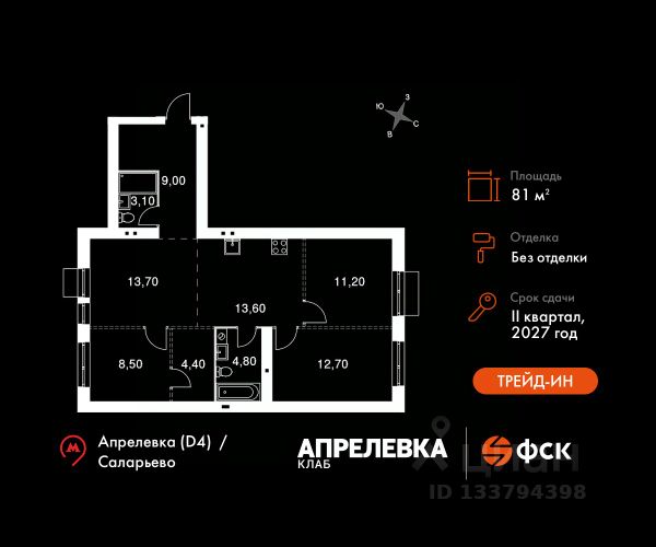 Прямая продажа от застройщика! Загородный жилой комплекс класса Комфорт Плюс. Продаётся 2-к квартира номер 40 общей площадью 39.9 кв.м на 2-м этаже 5 этажного дома. Без отделки. Особенности: - Квартира доступна к покупке в Trade-In. - Линейная планировка - максимальная функциональность и удобство. - Увеличенное число окон - Евроформат - просторное и удобное жилье с отличной планировкой. - Гибкая планировка - создайте пространство по своему вкусу. - Просторная мягкая зона - комфорт и уют для отдыха всей семьи. - Вид из окна: двор Квартира без отделки. Чистый холст для воплощения интерьера вашей мечты. Расположение комплекса: "Апрелевка Клаб" - это жилой комплекс всего в 30 км от Москвы по Киевскому шоссе, где городские удобства гармонично сочетаются с природой. Здесь начинается новая ступень жизни: современная малоэтажная застройка не нарушает живописные виды, а закрытая территория дарит чувство безопасности. Особенности проекта: - Улучшенная отделка МОПов - Социальная инфраструктура в шаговой доступности: муниципальные детский сад и школа, поликлиника - Не просто школа: школа МГИМО - Школа искусств МАРХИ - Всесезонное уникальное благоустройство: от города к природе через призму искусства - Комфортное пространство (спорт, досуг с детьми, работа в удаленном формате с прекрасными видами, место для творчества, тихие места для уединения и размышления) - Отличная транспортная доступность Транспортная доступность: - Метро Филатов Луг и Рассказовка - 25 км - МЦД Апрелевка - 5 км - МКАД — 30 км - Садовое кольцо — 45 км - Метро в Троицке (открытие в 2030) — 22 км - Ближайшая остановка общ. транспорта "Фрунзевец" - 550 м - Ст. м. "Саларьево" - 30 мин. на автобусе Внутренняя инфраструктура: Здесь есть хобби на любой вкус, возраст и сезон. Велосипедные, беговые и прогулочные маршруты, уличный workout, летний амфитеатр, спортивная площадка, центральная площадь с сухим фонтаном и игровыми зонами. Крытые развлечения: зона коворкинга, детская комната, кафе. В жилом комплексе будет современная школа на 830 мест и детский сад на 400 мест нового формата: с просторными классами и современным оснащением согласно высоким стандартам. Также на территории будет размещена школа искусств. Дворы без машин, игровые зоны и маршруты для прогулок с навигацией минимизируют риски и создают ощущение защищенности. Вдоль южной границы комплекса протекает река Десна, создавая зону отдыха в природном окружении. Цены указаны с учетом скидки.