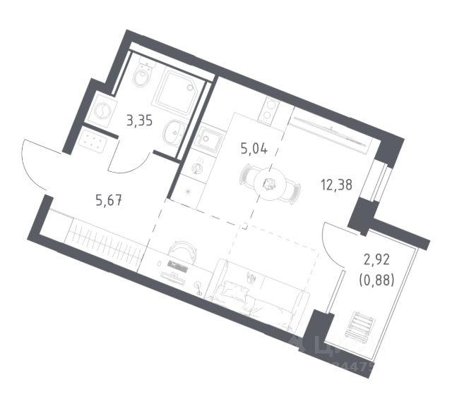 В продаже студия в корпусе 9 ЖК 'Квартал Западный'. Квартира располагается на 2 этаже, общая площадь 27.32 м2.