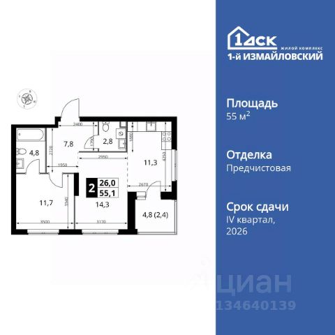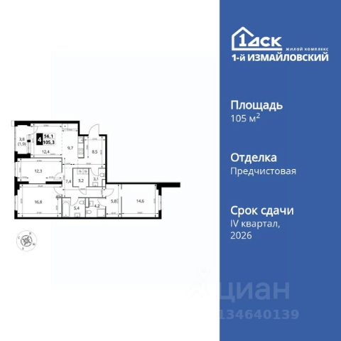 Прямая продажа от застройщика! Жилой Комплекс Комфорт класса. Продаётся 4-к квартира номер 420 общей площадью 85.3 кв.м. на 2-м этаже 32 этажного здания. Без отделки. Особенности квартиры: - Мастер-зона с санузлом и гардеробной. Всё для вашего комфорта и удобства, включая личный санузел и гардероб. - Просторная спальня, в которой можно разместить большую кровать. - Угловая планировка - больше пространства для ваших идей. - Увеличенное количество окон - дополнительное освещение и свежий воздух. - Гостевой санузел - комфорт и удобство для ваших гостей. - Душ помимо ванной - дополнительное удобство для вашей семьи. - Постирочная - организуйте пространство для стирки и сушки вещей. - Евроформат - просторное и удобное жилье с отличной планировкой. - Место для игры/занятия спортом - идеальное пространство для активных детей. - Можно оборудовать 2 или более рабочих места - пространство для нескольких человек. - Возможность добавить спальное место - дополнительный комфорт для гостей. - Проходная кухня-гостиная - идеальное пространство для общения и готовки. - Гардеробная - удобство для хранения и организации вещей. - Ниша под шкаф - компактное и удобное место для вещей. - Лоджия - уютное место для отдыха и тишины. Информация о комплексе: Современный архитектурный проект "1-й Измайловский" - идеальное место для проживания, расположенное в восточной части Москвы в окружении 14 000 гектаров леса. Комплекс пронизан атмосферой здорового образа жизни и благополучия. Сиреневый сад и близлежащие лесопарки - это места, где можно насладиться лыжными прогулками зимой и тонизирующими пробежками летом. Расположенный между Щелковским шоссе и Амурской улицей, "1-й Измайловский" осмысляет себя не столько через близость к городским точкам притяжения, сколько через соседство с зелеными пространствами и спортивными объектами. Он отгорожен от шоссе застройкой первой линии и собственными садами здоровья. В его окнах - изумрудное море парка "Лосиный остров" и густые кроны окрестных дворов. В его графике - занятия спортом и прогулки в Измайлове. Транспортная доступность: Не более 2,5 км до станций метро "Щёлковская" и "Черкизовская" и МЦК "Локомотив". Щёлковское шоссе соединяет квартал с Северо-восточной хордой и МКАД, Центральным автовокзалом и Восточным железнодорожным вокзалом. Две автобусные остановки в паре минут ходьбы и 11 маршрутов общественного транспорта. На автомобиле 3 минуты до СВХ 12 минут до ТТК 15 минут до Садового кольца Внутренняя инфраструктура: Комплекс находится в исторически сложившемся районе Москвы с хорошим качеством и плотностью инфраструктуры. Торговые центры и сетевые магазины -6 детских садов, включая собственный детский сад на 125 мест -3 школы, включая собственную школу -Поликлиники и медицинские центры -Парки и зоны отдыха Расположение архитектурного проекта создает все условия для тех, кто стремится к здоровому образу жизни и для тех, кто уже сделал выбор в его пользу. В ближайшем окружении ра