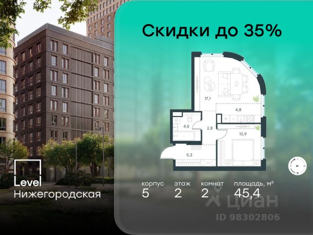 Лот из акционного пула. Цена указана с учетом применения скидки, подробности уточняйте у менеджеров в Офисах продаж. Продажа от застройщика. Продается просторная 2-комнатная квартира на 2 этаже современного жилого комплекса Beside 2.0. Вид из окон: на улицу. Срок сдачи: 2 кв. 2027 г. Есть 2 балкона. Отделка WhiteBox: - Вам не придется заниматься черновыми работами. - Возможность реализовать любой дизайн-проект. Расположение: В Beside 2.0 все необходимое - в шаговой доступности, не нужно тратить много времени на дорогу до работы, школы и поликлиники, походы в магазины и кинотеатры. Квартал расположен на пересечении ключевых транспортных магистралей Москвы, что позволяет быстро и легко добраться до любой нужной локации. Выбирайте наиболее подходящее занятие или попробуйте все! - Спортивные центры - Ретейл на первых этажах - Событийная площадь с амфитеатром - Дворовые площадки для активностей Транспортная доступность: - 5 минут на машине до ТТК - 7 минут на машине до Садового кольца - 7 минут пешком до станции "Нижегородская Внутренняя инфраструктура Beside 2.0: - Своя школа на 825 учеников - Просторное и светлое гранд-лобби - Коворкинг на открытом воздухе - Детский клуб Akvilon Kids - Подземный паркинг - Колясочные и велосипедные - Сити-боксы для хранения - Профессиональная управляющая компания Преимущества: - Технология энергоэффективности Termo-S, снижающая теплопотерю домов и позволяющую экономить на электроснабжении - Soundstop - технология дополнительной шумоизоляции на 39 дБ в квартирах с WhiteBox и чистовой отделкой - Система умного дома inHome 3.0 позволит контролировать коммунальные расходы, оплачивать счета и пользоваться услугами, не выходя из умного дома - Vent-In - система циркуляции воздуха в каждой комнате