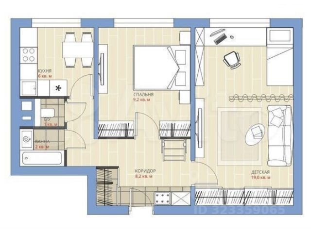 Продается 3-комнатная квартира под ремонт общей площадью 58,5 м², расположена на 2этаже 9-этажного дома, в том числе: