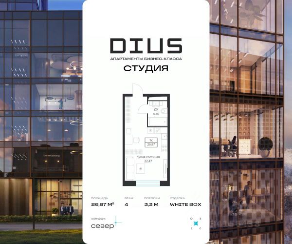 Сервисные апартаменты для жизни! Продаются 1-комнатные апартаменты 48.43 кв.м. на 4-м этаже 20-этажного комплекса. Преимущества лота: - Гардеробная - Отделка White box - Потолки 3,3 м - Доступ к сервисам комплекса класса Премиум DIUS — многофункциональный комплекс бизнес-класса на севере Москвы, сочетающий сервисные апартаменты, бизнес-центр класса А и торгово-развлекательную галерею. Проект, воплощающий современный подход к жизни в мегаполисе, позволяет объединить комфорт проживания, работу, деловые встречи и досуг в едином пространстве. На территории DIUS предусмотрены двухуровневый подземный паркинг с прямым доступом из лифта, гостевые парковочные места, а также бизнес-центр и торгово-развлекательная галерея. Территория комплекса закрыта для посторонних и благоустроена с учётом современных стандартов: качественное озеленение, прогулочные дорожки, зоны тихого и активного отдыха. Закрытая территория, современные лобби, коворкинги, спортивные зоны и общественные пространства создают условия для жизни, работы и отдыха. Резиденты комплекса могут воспользоваться профессиональными сервисами управляющей компании, включая уборку, техническую поддержку, обеспечение безопасности и доверительное управление для инвесторов. DIUS расположен в районе с развитой инфраструктурой и высоким спросом на аренду. В шаговой доступности — станция МЦД-2 "Гражданская" (5 минут пешком) и станции метро "Аэропорт" (15 минут пешком) и "Сокол". Быстрый выезд на основные магистрали Москвы обеспечивает удобную транспортную доступность: дорога до центра занимает около 25 минут, до Белорусского и Савёловского вокзалов — 15 минут, до аэропорта Шереметьево — 45 минут. В окружении DIUS — Тимирязевский и Петровский парки, ландшафтный парк "Ходынское поле", культурные и исторические объекты столицы, а также крупнейшие торговые и спортивные центры города. Такое соседство открывает разнообразные возможности для отдыха, прогулок и насыщенного досуга. В DIUS реализован формат отделки White Box: каждые апартаменты предоставляется будущему владельцу в современном и подготовленном под чистовую отделку состоянии. Условия покупки: - 100% оплата с максимальной выгодой - Рассрочка на срок до 24 мес. под 0% от застройщика - Трейд-ин с полным сопровождением Мы предлагаем несколько форматов покупки, чтобы вы могли выбрать оптимальный сценарий — исходя из ваших целей, возможностей и финансовых стратегий. Наши менеджеры будут рады ответить на все ваши вопросы - звоните нам напрямую по номеру в объявлении.