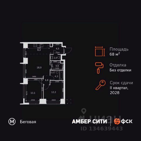 Прямая продажа от застройщика! Успейте забронировать квартиру до повышения стоимости! Жилой Комплекс премиум-класса. Продаётся 2-к квартира номер 666 общей площадью 59.2 кв.м. на 4-м этаже 57 этажного здания. Предчистовая отделка. Цена с учётом скидки. Особенности квартиры: - Организуем показ в удобное для вас время! - Мастер-зона с санузлом и гардеробной. Всё для вашего комфорта и удобства, включая личный санузел и гардероб. - Просторная спальня, в которой можно разместить большую кровать. - Линейная планировка - максимальная функциональность и удобство. - Увеличенная ширина окна/окон - больше света и визуального простора. - Увеличенная высота окна - больше воздуха и света. - Гостевой санузел - комфорт и удобство для ваших гостей. - Постирочная - организуйте пространство для стирки и сушки вещей. - Евроформат - просторное и удобное жилье с отличной планировкой. - Гибкая планировка - создайте пространство по своему вкусу. - Место для игры/занятия спортом - идеальное пространство для активных детей. - Просторная мягкая зона - комфорт и уют для отдыха всей семьи. - Возможность добавить спальное место - дополнительный комфорт для гостей. - Проходная кухня-гостиная - идеальное пространство для общения и готовки. - Гардеробная - удобство для хранения и организации вещей. - Ниша под шкаф - компактное и удобное место для вещей. Квартира с предчистовой отделкой. Вам не придется заниматься черновыми и трудоёмкими работы, а чистовую отделку и дизайн - сделайте на свой вкус. Информация о комплексе: ЖК "Амбер Сити" - вдохновляющий квартал у Москва-Сити с архитектурой мирового уровня. Здесь кипит жизнь 24/7: парки, инфраструктура и виды на центр без городской суеты. Самодостаточная среда для работы, творчества и семьи в духе лучших районов Нью-Йорка и Гонконга. Транспортная доступность: Квартал с исключительной транспортной доступностью: ключевые точки Москвы в 15-20 минутах. Полное погружение в деловую и культурную жизнь столицы с минимальными затратами времени на дорогу. Общественный транспорт: - Метро "Беговая" - 5 минут пешком - Остановка "2-й Хорошёвский проезд" - 3 минуты пешком - Метро "Звенигородская" (строящаяся) - 10 минут пешком На автомобиле: - Москва-Сити - 10 минут - Звенигородское шоссе - 3 минуты - ТТК - 5 минут - Серебряный бор - 8 минут - Садовое кольцо - 12 минут - Кремль - 20 минут - Шереметьево - 40 минут Внутренняя инфраструктура: ЖК "Амбер Сити": многоуровневый ландшафт на 6 гектарах с зелёным бульваром, объединяющим арт-объекты, водные зоны и архитектурные формы. В закрытых дворах на стилобате - детские площадки с сенсорными элементами, зоны отдыха с креслами и настилами для йоги. Навесы с подогревом и зарядками для зимнего сезона. Активности на любой вкус: настольный теннис, петанк, чтение в тишине на оборудованных скамейках. Продуманное пространство для ежедневного отдыха и игр детей и взрослых.