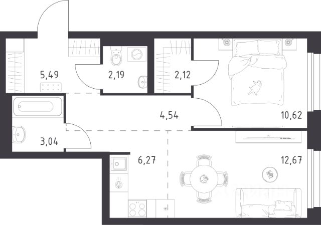 В продаже 1-комнатная квартира в корпусе 35 ЖК 'Новое Внуково'. Квартира располагается на 4 этаже, общая площадь 46.94 м2.