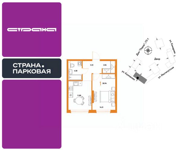 Рассрочка 0% с первым взносом от 20%, ипотека с субсидией или наличные. Подберём способ оплаты индивидуально. Покупайте квартиру сейчас — заезжайте уже в следующем году! Продается 1комнатная квартира на 4 этаже от застройщика Страна Девелопмент. Площадь квартиры 38.94 кв. м. Жилой комплекс ЖК "Страна.Парковая" строится в самом центре Мытищ в 15 мин. пешком от парков Мира и Яузы. Внутри квартала — детский сад, приватные дворы, стрит-ритейл на первом этаже, множество мини-парков и прогулочный мост-акведук. За 15 мин. вы сможете дойти до ж/д станции Мытищи, за 20 мин. на авто доехать до метро "Медведково" и ВДНХ. ПРЕИМУЩЕСТВА Закрытые дворы. Видеонаблюдение 24/7, доступ по системе контроля, отдельные въезды для спецтехники. Планировки под любой жизненный сценарий — от компактных студий до евро-3 с террасой; Благоустройство территории. Несколько парков, спортивные и детские площадки, амфитеатр с гамаками и шезлонгами и др. Тёплый паркинг. Видеоконтроль, лифт до нужного этажа, стандартные и семейные места. Лобби с коворкингом. Здесь можно подождать такси на мягком диване или даже поработать за столом. Дизайнерская отделка При покупке квартиры в ЖК "Страна.Парковая" можно приобрести ремонт от застройщика. 4 стиля отделки для ванной и 5 вариантов для остальных комнат — на выбор. Кухня от застройщика Одна из удобных опций от Страны — приобретение кухни в ипотеку при покупке опции "Ремонт". Доступно 4 стиля на выбор: дерево, керамика, мрамор, бетон. Умный дом Функция "Умный дом" позволит перейти на новый уровень комфорта. Управляйте светом в квартире с помощью голоса, получайте информацию о ситуации в квартире, находясь на работе или в отпуске. СПОСОБЫ ПОКУПКИ Сотрудники "Страна Девелопмент" будут сопровождать вас на каждом этапе сделки, помогут получить одобрение по ипотеке или снизить ежемесячный платеж. Доступны гибкие варианты оплаты: - ипотека (стандартная/с субсидией/траншевая) - рассрочка (с ПВ от 20%) - с использованием материнского капитала - оплата наличными