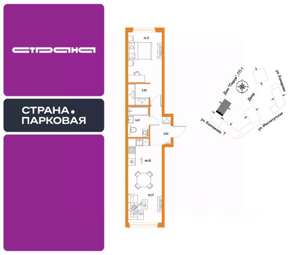 Рассрочка 0% с первым взносом от 20%, ипотека с субсидией или наличные. Подберём способ оплаты индивидуально. Покупайте квартиру сейчас — заезжайте уже в следующем году! Продается 1комнатная квартира на 4 этаже от застройщика Страна Девелопмент. Площадь квартиры 46.92 кв. м. Жилой комплекс ЖК "Страна.Парковая" строится в самом центре Мытищ в 15 мин. пешком от парков Мира и Яузы. Внутри квартала — детский сад, приватные дворы, стрит-ритейл на первом этаже, множество мини-парков и прогулочный мост-акведук. За 15 мин. вы сможете дойти до ж/д станции Мытищи, за 20 мин. на авто доехать до метро "Медведково" и ВДНХ. ПРЕИМУЩЕСТВА Закрытые дворы. Видеонаблюдение 24/7, доступ по системе контроля, отдельные въезды для спецтехники. Планировки под любой жизненный сценарий — от компактных студий до евро-3 с террасой; Благоустройство территории. Несколько парков, спортивные и детские площадки, амфитеатр с гамаками и шезлонгами и др. Тёплый паркинг. Видеоконтроль, лифт до нужного этажа, стандартные и семейные места. Лобби с коворкингом. Здесь можно подождать такси на мягком диване или даже поработать за столом. Дизайнерская отделка При покупке квартиры в ЖК "Страна.Парковая" можно приобрести ремонт от застройщика. 4 стиля отделки для ванной и 5 вариантов для остальных комнат — на выбор. Кухня от застройщика Одна из удобных опций от Страны — приобретение кухни в ипотеку при покупке опции "Ремонт". Доступно 4 стиля на выбор: дерево, керамика, мрамор, бетон. Умный дом Функция "Умный дом" позволит перейти на новый уровень комфорта. Управляйте светом в квартире с помощью голоса, получайте информацию о ситуации в квартире, находясь на работе или в отпуске. СПОСОБЫ ПОКУПКИ Сотрудники "Страна Девелопмент" будут сопровождать вас на каждом этапе сделки, помогут получить одобрение по ипотеке или снизить ежемесячный платеж. Доступны гибкие варианты оплаты: - ипотека (стандартная/с субсидией/траншевая) - рассрочка (с ПВ от 20%) - с использованием материнского капитала - оплата наличными