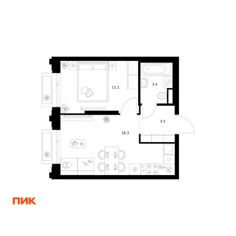 Однокомнатная квартира для пары или начинающего специалиста. -В квартире предусмотрено классическое остекление -Просторная кухня-гостиная с зонированной кухней и зоной отдыха для уютных вечеров -Возможность организации изолированной спальни -Дополнительное окно в квартире наполнит пространство светом и теплом -Ниша для системы хранения в коридоре Молодой район для жизни "Акценты" в классе бизнес-лайт — точка роста на севере Москвы. Он предлагает элегантные и строгие фасадные решения, авторский ландшафтный дизайн, а также функциональные и доступные по цене планировки. Проект находится в семи минутах пешком от станции метро "Лианозово" и одноименной МЦД-1. Добраться до МКАД можно будет за 10 минут на авто, а дорога до центра займет около 20 минут. Жилой комплекс, расположенный в районе Восточного Дегунино, предлагает развитую инфраструктуру для тех, кто ценит выбор. Он имеет удобный доступ не только к транспорту, но и к паркам, школам, садам, больницам и другим социальным объектам. В пешей доступности находятся 4 поликлиники, 5 школ, 6 детских садов, 3 бассейна и баскетбольная академия. Еще рядом есть несколько лесопарков: "Лианозово" с аттракционами и спортивными площадками для тенниса, волейбола и баскетбола, "Останкино" с конным клубом, прудом и пейнтбол-площадками. А "Северные Дубки" — это завораживающее пространство для прогулок под кронами вековых дубов, берез и лип. Кроме того, в районе не будет скучно и юным жителям. Можно оттачивать трюки в скейтпарке "Союз". Ловким и прыгучим советуем записаться в акробатический центр "Белка".