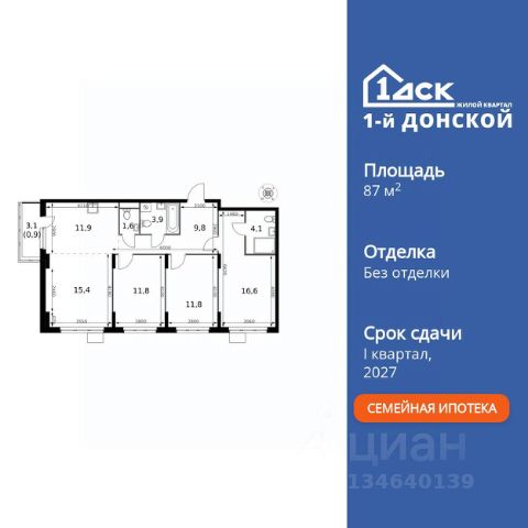 Прямая продажа от застройщика! Жилой Комплекс класса Комфорт Плюс. Продаётся 4-к квартира номер 24 общей площадью 87.8 кв.м. на 4-м этаже 24 этажного здания. Без отделки. Особенности квартиры: - МЦД-5 в пешей доступности - Квартал с собственной набережной - Свои 2 детских сада и школа - Мастер-зона с санузлом. Уют и комфорт в одном пространстве. - Угловая планировка - больше пространства для ваших идей. - Раздельный санузел - больше удобства для всех членов семьи. - Евроформат - просторное и удобное жилье с отличной планировкой. - Кухня-гостиная - идеальное пространство для встреч с близкими. - Балкон - открытое пространство для отдыха. Информация о комплексе: Комплекс 1-й Донской расположен в 7 км от МКАД по трассе М-4 Дон. В нем сочетаются все плюсы комфортной городской среды и природного окружения. В проекте достаточно большой процент квартир, выходящих на 2-3 стороны света. Секции-маяки формируют у зданий визуальную L-форму, что придает застройке структуру и ритмику объемов. На ощущение динамики работает и разная этажность зданий. Теплая цветовая палитра фасадов отражает природу Дона. Вечерами дома преображаются благодаря архитектурной подсветке, выгодно выделяясь на городском фоне. Природа оказывает положительное влияние на человека на всех уровнях восприятия: через зрение, запахи, звуки, тактильные ощущения. Неподалеку от ЖК Первый Донской: Ермолинский парк, Видновский лесопарк, Жуковский парк Транспортная доступность: Комплекс удобно расположен в 7 км от МКАД по трассе М-4 Дон (через Видное). Расстояние до Каширского шоссе составляет 12 км. Добраться до метро и центра Москвы позволяет развитая сеть маршрутов общественного наземного транспорта. Действующая ж/д станция Калинина Павелецкого направления в 15-17 минутах ходьбы (МЦД-5 в 2025-2026 гг). Внутренняя инфраструктура: Проект 1-й Донской соседствует с бурно развивающимся районом, основная инфраструктура которого уже сложилась. В строительстве современных жилых комплексов в округе есть свои плюсы: здесь формируется продуманная и комфортная городская среда. Что касается внутренней инфраструктуры, на территории квартала будут расположены собственные муниципальные 2 детских садика и школа, которые помогут совместить приятное с полезным. Территория комплекса пронизана целой сетью живописных пешеходных маршрутов, позволяющих попасть в любой уголок района. Основные пути, как водится, "торговые". Они проходят вдоль магазинов, кафе и других представителей коммерции и отделяются от проезжей части зеленой "фито" - стеной. Среди крупных социальных объектов предусмотрены своя поликлиника и торговый центр с примыкающей площадью для общественных мероприятий. Уют начинается с продуманного подъезда. Сквозные подъезды наполнены светом благодаря сплошному остеклению. Вход в них есть и с улицы, и со двора.
