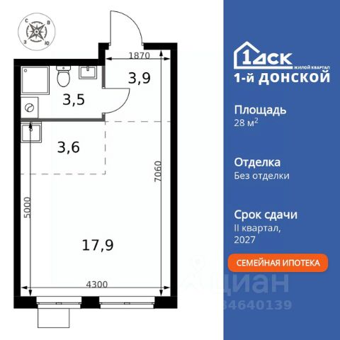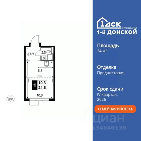 Прямая продажа от застройщика! Жилой Комплекс класса Комфорт Плюс. Продаётся квартира-студия номер 759 общей площадью 24.6 кв.м. на 4-м этаже 24 этажного здания. Отделка Whitebox. Особенности квартиры: - МЦД-5 в пешей доступности - Квартал с собственной набережной - Свои 2 детских сада и школа - Линейная планировка - максимальная функциональность и удобство. - Ниша под шкаф - компактное и удобное место для вещей. Квартира с предчистовой отделкой (White box). Вам не придется заниматься черновыми и трудоёмкими работы, а чистовую отделку и дизайн - сделайте на свой вкус. Информация о комплексе: Комплекс 1-й Донской расположен в 7 км от МКАД по трассе М-4 Дон. В нем сочетаются все плюсы комфортной городской среды и природного окружения. В проекте достаточно большой процент квартир, выходящих на 2-3 стороны света. Секции-маяки формируют у зданий визуальную L-форму, что придает застройке структуру и ритмику объемов. На ощущение динамики работает и разная этажность зданий. Теплая цветовая палитра фасадов отражает природу Дона. Вечерами дома преображаются благодаря архитектурной подсветке, выгодно выделяясь на городском фоне. Природа оказывает положительное влияние на человека на всех уровнях восприятия: через зрение, запахи, звуки, тактильные ощущения. Неподалеку от ЖК Первый Донской: Ермолинский парк, Видновский лесопарк, Жуковский парк Транспортная доступность: Комплекс удобно расположен в 7 км от МКАД по трассе М-4 Дон (через Видное). Расстояние до Каширского шоссе составляет 12 км. Добраться до метро и центра Москвы позволяет развитая сеть маршрутов общественного наземного транспорта. Действующая ж/д станция Калинина Павелецкого направления в 15-17 минутах ходьбы (МЦД-5 в 2025-2026 гг). Внутренняя инфраструктура: Проект 1-й Донской соседствует с бурно развивающимся районом, основная инфраструктура которого уже сложилась. В строительстве современных жилых комплексов в округе есть свои плюсы: здесь формируется продуманная и комфортная городская среда. Что касается внутренней инфраструктуры, на территории квартала будут расположены собственные муниципальные 2 детских садика и школа, которые помогут совместить приятное с полезным. Территория комплекса пронизана целой сетью живописных пешеходных маршрутов, позволяющих попасть в любой уголок района. Основные пути, как водится, "торговые". Они проходят вдоль магазинов, кафе и других представителей коммерции и отделяются от проезжей части зеленой "фито" - стеной. Среди крупных социальных объектов предусмотрены своя поликлиника и торговый центр с примыкающей площадью для общественных мероприятий. Уют начинается с продуманного подъезда. Сквозные подъезды наполнены светом благодаря сплошному остеклению. Вход в них есть и с улицы, и со двора.