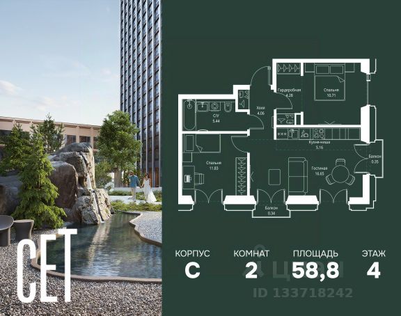 Прямая продажа от застройщика. В ЖК Сет продается 4-комнатная квартира площадью 109.63 м², расположенная в корпусе Д, на 4 этаже 5 этажного дома. Сет имеет стратегически выгодное расположение в ЗАО, в районе с большой историей и блестящим будущим: между природной зоной долины реки Сетунь и Кутузовским проспектом. В рамках возведения первой очереди предусмотрено три корпуса высотой 18, 45 и 59 этажей. На верхних этажах спроектированы общедоступные смотровые площадки с панорамным обзором на центр столицы. Преимущества проекта: • Функциональные планировочные решения • Контроль проникновения через входную дверь • Система управления освещением и температурой в квартире • Система защиты от протечек с функцией перекрытия воды • Вход в подъезд по биометрическим считывателям Face ID • Скоростные лифты • Двухуровневый подземный охраняемый паркинг на 495 машино-мест Застройка Сет включает в себя не только жилые корпуса, но и инфраструктурные объекты. Все необходимое для повседневного комфорта будет расположено в шаговой доступности: • Фитнес-Клуб с бассейном • Ведущая городская школа, детский сад и школа искусств • Центр культуры и досуга • Медицинский центр • Кафе и рестораны Расположение комплекса: Пешком: • Метро "Давыдково" - 17 минут • Парк "Долина реки Сетунь" - 3 минуты • Открытие новых станций метро в шаговой доступности в будущем Инфраструктура: Разнообразить свой день резиденты Веер смогут также проводя больше времени на свежем воздухе. Двор разделен на 4 зоны разных эмоций и действий, которые пересечены и соединены веерными прогулочными маршрутами: • Спортивная площадка устроена в глубине "Кленовой рощи" • В "Чайном домике" будет создан навес с утеплением для отдыха в любую погоду • Площадки для детей воплотятся в "Волшебный лес" с цветами, зеркалами и световым дизайном • "Центральная площадь" устроена у водного оазиса живописного пруда. На машине: • "Москва-Сити" - 15 минут • Садовое кольцо - 20 минут • ТЦ "Океания" - 8 минут • ТЦ "Времена года" - 13 минут • Сколково - 12 минут • Гребной канал - 17 минут Компания MR предлагает своим клиентам специальные условия приобретения квартир в рамках программ ипотечного кредитования от банков-партнеров.