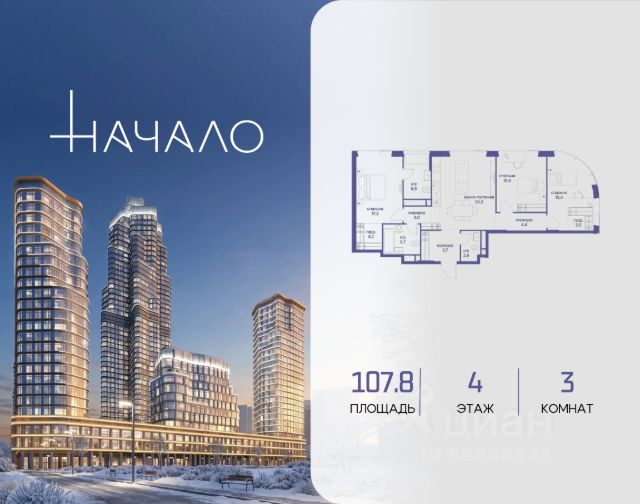 В престижном районе Пресня, на перекрестке делового и исторического центров Москвы, продается двухкомнатная квартира площадью 85.20 кв. м без отделки. Квартира находится на 4 этаже 11-этажного дома, в новом элитном жилом комплексе "Начало" от девелопера "Донстрой". Реализация проекта запланирована на 1 квартал 2030 года. Начало - футуристический дом на Пресне в нескольких минутах от Сити и Садового кольца. Проект по-настоящему космического масштаба, где есть все, чтобы раскрыть себя и свои возможности. Расположение Пресня - один из самых престижных районов Москвы. Жить здесь - значит стать частью истории столицы, быть в эпицентре деловой активности города и ощущать, как сама Вселенная вращается вокруг вас. - 5 минут пешком до Красногвардейских прудов; - 15 минут пешком до ст. метро "Улица 1905 года"; - 6 минут на автомобиле до Садового кольца и небоскрёбов "Москва-Сити"; - 12 минут на автомобиле до Кремля. Архитектура как путешествие Как росток пробивает скалу, как растет кристалл, как ракета устремляется ввысь - так формируется архитектурный образ этого дома. Точно выверенный баланс между футуристичными формами и функциональным содержанием дома выводит жизнь в нем на новую орбиту. Стеклянные фасады отражают небо и город, превращая здание в зеркало для окружающего ландшафта. Двор между небом и землёй Просторная территория двора с тремя тематическими зонами отдыха: "Млечный путь" - для детских игр и развлечений; "Космический сад" - для тихого отдыха и релакса; "Метеоритный сад" - для любителей спорта. Открытый променад - сквозной маршрут на крыше стилобата с зонами отдыха, занятий спортом, детских игр и совместной работы. Все площадки плавно связаны между собой прогулочной дорожкой. Теплая кольцевая галерея и мосты над пространством двора - все корпуса "стыкуются", точно модули космической станции. Главный центр притяжения В составе проекта возводится собственный комьюнити-центр, где создана идеальная атмосфера для любых начинаний: - Детский клуб для будущих покорителей Вселенной; - Коворкинги для решения задач планетарного и космического масштабов; - Переговорные для судьбоносных и просто важных встреч; - Лаунжи с атмосферой дзена и релакса; - Библиотека для спокойного чтения; - Кинотеатр для классики и блокбастеров. Территория комфорта и приватности Всё нужное рядом: - Современный образовательный центр со школой и детским садом - для ваших детей; - Фитнес-центр с бассейном - для релакса и борьбы со стрессом; - Ресторанная улица: кафе, рестораны, летние террасы - для деловых обедов и семейных ужинов; - Пекарня и минимаркет в доме - для ежедневных покупок; - Сквер у дома - для неспешных прогулок и спокойного отдыха; - Никаких такси на улице. Машина заберет вас прямо в подземном паркинге вашего корпуса.