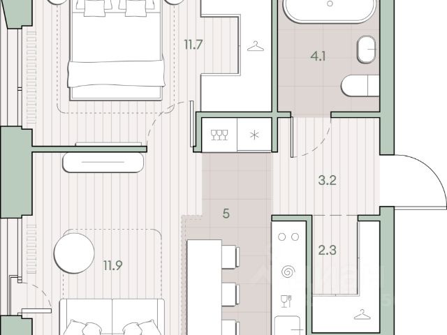 О квартире Продаётся 2-комнатная квартира общей площадью 53.4 кв.м. без отделки. Квартира расположена на 4 этаже корпуса 5.5 в жилом комплексе бизнес-класса "Среда на Лобачевского" в пешей доступности от метро "Аминьевская". О жилом комплексе "Среда на Лобачевского" полностью соответствует критериям современного жилого пространства. Взяв за основу рациональный подход, мы гармонично соединили дизайн, актуальные тренды и функциональность. Продуманный современный экстерьер и функциональные планировки внутри, приватные пространства и разнообразные досуговые зоны для каждого члена семьи — все это "Среда на Лобачевского". Инфраструктура Район отлично развит и наполнен жизнью, здесь уже есть вся необходимая инфраструктура — детские сады, школы, медучреждения, торговые центры, благоустроены парки для прогулок и отдыха, удобен и легкодоступен городской транспорт. Рядом расположены учебные корпуса крупных университетов — МГУ, МГИМО и РАНХиГС. Школы и детские сады в районе занимают высокие позиции в городских рейтингах, поэтому вам не придется беспокоиться о качестве образования детей. Как и об отдыхе: поблизости расположены живописные пруды, реки и парки. Это Парк Олимпийской деревни, Парк имени 50-летия Октября, Мещерский парк и Очаковские пруды. Теперь поставить галочки в еженедельном чек-листе "спорт-прогулки-встречи с друзьями" можно, не покидая любимый район. Особенности Особое внимание в проекте уделяется созданию функциональных пространств не только внутри дома, но и за его пределами. В ландшафтном парке "Среды на Лобачевского" расположены крытые зоны для спокойного времяпровождения, места для активного отдыха и спорта, коворкинг, соседский комьюнити-центр, водные объекты. —Ландшафтный парк во дворе. —Водный сад с зонами отдыха. —Зоны коворкинга. —Дизайнерские гранд-лобби. —Бесключевой доступ. —Подземный паркинг.
