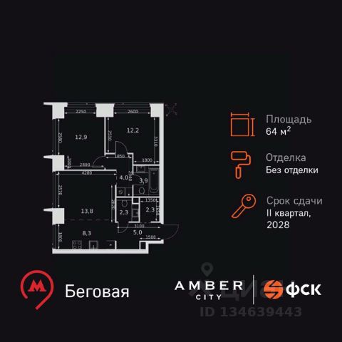ИПОТЕКА 10% ДЛЯ ВСЕХ БЕЗ НАЦЕНОК! Прямая продажа от застройщика! Жилой Комплекс премиум-класса. Продаётся 2-к квартира номер 666 общей площадью 59.2 кв.м. на 4-м этаже 57 этажного здания. Отделка Whitebox. Цена с учётом скидки. Особенности квартиры: - Мастер-зона с санузлом и гардеробной. Всё для вашего комфорта и удобства, включая личный санузел и гардероб. - Просторная спальня, в которой можно разместить большую кровать. - Линейная планировка - максимальная функциональность и удобство. - Увеличенная ширина окна/окон - больше света и визуального простора. - Увеличенная высота окна - больше воздуха и света. - Гостевой санузел - комфорт и удобство для ваших гостей. - Постирочная - организуйте пространство для стирки и сушки вещей. - Евроформат - просторное и удобное жилье с отличной планировкой. - Гибкая планировка - создайте пространство по своему вкусу. - Место для игры/занятия спортом - идеальное пространство для активных детей. - Просторная мягкая зона - комфорт и уют для отдыха всей семьи. - Возможность добавить спальное место - дополнительный комфорт для гостей. - Проходная кухня-гостиная - идеальное пространство для общения и готовки. - Гардеробная - удобство для хранения и организации вещей. - Ниша под шкаф - компактное и удобное место для вещей. Квартира с предчистовой отделкой (White box). Вам не придется заниматься черновыми и трудоёмкими работы, а чистовую отделку и дизайн - сделайте на свой вкус. Информация о комплексе: Amber City - это не просто квартал. Это место, куда ведут все маршруты, где рождается вдохновение работать и творить, где счастлива семья и жизнь кипит 24/7. Модная архитектура, высокотехнологичные решения и самодостаточная инфраструктура приближают Amber City к лучшим районам Гонконга и Нью-Йорка. Потрясающие виды на Москва-Сити и центр позволяют заряжаться их амбициозностью, не подчиняясь суете. Стремящиеся ввысь небоскребы, благоустроенный парк с зонами отдыха для взрослых и детей, а также многочисленные объекты инфраструктуры возводятся в западной части центра Москвы. Транспортная доступность: Квартал отличается исключительной транспортной доступностью: большая часть значимых мест Москвы находится на расстоянии 15-20 минут. Такое расположение позволит полностью погрузиться в деловую и культурную жизнь столицы и тратить на дорогу только необходимый минимум времени. Общественный транспорт: - Станция метро "Беговая" - 5 минут пешком - Станция "Беговая" (МЦД-1) - 5 минут пешком - Ж/д станция Беговая - 12 минут пешком - Остановка "2-й Хорошёвский проезд" - 3 минуты пешком - Станция метро "Звенигородская" (строящаяся) - 10 минут пешком На автомобиле: - Звенигородское шоссе - 3 минуты - TTK - 5 минут - Хорошёвское шоссе - 9 минут - Садовое кольцо - 12 минут - Красная Пресня - 15 минут - Тверская - 20 минут - Серебряный бор - 8 минут - Строгинский затон - 8 минут - Москва-Сити - 10 минут - Кремль - 20 минут - Аэропорт Шереметьево - 40 минут Внутренняя инфраструкту