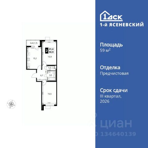 Прямая продажа от застройщика! Жилой Комплекс класса Комфорт Плюс. Продаётся 2-к квартира номер 441 общей площадью 59 кв.м. на 4-м этаже 18 этажного здания. Отделка Whitebox. Цена с учётом скидки. Особенности квартиры: - Квартиры рядом с метро - м. Корниловская 9 мин пешком - 63 га лесопарка за окнами - Школа c it-кластером и бассейном. 2 детских сада - Мастер-зона с гардеробной. Просторное место для отдыха и удобного хранения вещей. - Просторная спальня, в которой можно разместить большую кровать. - Угловая планировка - больше пространства для ваших идей. - Увеличенная ширина окна/окон - больше света и визуального простора. - Увеличенное количество окон - дополнительное освещение и свежий воздух. - Гостевой санузел - комфорт и удобство для ваших гостей. - Просторная кухня - место для семейных ужинов и кулинарных экспериментов. - Гардеробная - удобство для хранения и организации вещей. - Лоджия - уютное место для отдыха и тишины. Квартира с предчистовой отделкой (White box). Вам не придется заниматься черновыми и трудоёмкими работы, а чистовую отделку и дизайн - сделайте на свой вкус. Информация о комплексе: В жилом комплексе комфорт-плюс класса "1-го Ясеневского" доступны преимущества двух стилей жизни. Ведь в пешей доступности метро, школа с 25-метровым бассейном и IT-кластером и при этом целых 63 га благоустроенного Троицкого лесопарка под окнами, где так приятно дышать свежим воздухом и слушать пение птиц. Собственная закрытая территория "1-го Ясеневского" представляет собой уютный оазис. Здесь и зеленый освещенный бульвар для прогулок, система велодорожек, маленькая городская площадь, кафе, пекарни и кофе поинты. А еще дворы без машин и многоэтажная парковка. Изюминка территории - фруктовые деревья во дворах и городские сады. "1-й Ясеневский" - всего в 1 км от МКАД, на территории новой Москвы. Жилой комплекс, где есть все необходимое для современного человека. Транспортная доступность: До метро "Корниловская" - 12 минут пешком До метро "Тютчевская" - 25 минут пешком До метро "Теплый стан" - 10 минут на транспорте До метро "Ольховая" - 30 минут на общественном транспорте Личный автотранспорт: Выезд на Калужское шоссе - 500 м МКАД - 1 км Внутренняя инфраструктура: ЖК "1-й Ясеневский" можно назвать идеальным местом для жизни семьи с детьми. Здесь буквально за домом находится Троицкий лесопарк - излюбленное место прогулок молодых родителей. А во внутренних дворах под детские площадки выделены специальные зоны. Они оборудованы всем, что нужно для счастливого детства: современными и максимально безопасными качелями, песочницами и лазалками. Оборудование и игровые сценарии на детских площадках спроектированы вместе с командой детских психологов для правильного развития ребенка и для повышения их интереса. Также рядом с домом два детских садика, один из которых уже построен и школа на 1100 мест. Школу по праву можно назвать образцовым учебным заведением. В ней закладываются основы успешного будущего.
