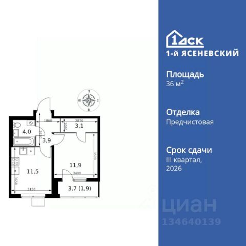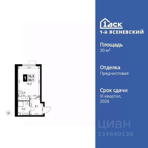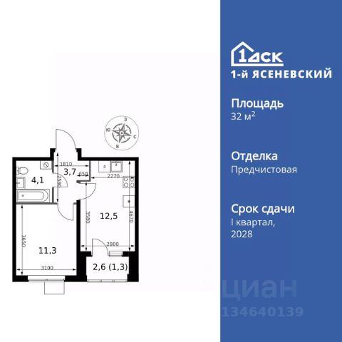 Прямая продажа от застройщика! Жилой Комплекс класса Комфорт Плюс. Продаётся 1-к квартира номер 583 общей площадью 32.9 кв.м. на 4-м этаже 18 этажного здания. Предчистовая отделка. Цена с учётом скидки. Особенности квартиры: - Квартиры рядом с метро - м. Корниловская 9 мин пешком - 63 га лесопарка за окнами - Школа c ИТ-кластером и бассейном. 2 детских сада - Организуем показ в удобное для вас время! - Линейная планировка - максимальная функциональность и удобство. - Можно оборудовать рабочее место - комфорт для работы и учёбы. - Ниша под шкаф - компактное и удобное место для вещей. - Лоджия - уютное место для отдыха и тишины. Квартира с предчистовой отделкой. Вам не придется заниматься черновыми и трудоёмкими работы, а чистовую отделку и дизайн - сделайте на свой вкус. Информация о комплексе: ЖК "1-й Ясеневский": преимущества городской инфраструктуры и природы. Пешая доступность к метро, школе с бассейном и ИТ-кластеру, а также 63 га Троицкого лесопарка под окнами. Закрытая территория с бульварами, велодорожками, кафе и дворами без машин. Фруктовые деревья и городские сады создают уникальную атмосферу. Всего в 1 км от МКАД - идеальный баланс для современной жизни. Транспортная доступность: До метро "Корниловская" - 12 минут пешком До метро "Тютчевская" - 25 минут пешком До метро "Теплый стан" - 10 минут на транспорте До метро "Ольховая" - 30 минут на общественном транспорте Личный автотранспорт: Выезд на Калужское шоссе - 500 м МКАД - 1 км Внутренняя инфраструктура: ЖК "1-й Ясеневский" - идеальное место для семей с детьми. Рядом Троицкий лесопарк для прогулок, а во дворах - современные детские площадки, разработанные с участием психологов. В шаговой доступности два детских сада и школа на 1100 мест с ИТ-кластером, бассейном и классами робототехники. Всё для счастливого детства и успешного будущего. Квартира с предчистовой отделкой - ваш дизайн без черновых работ