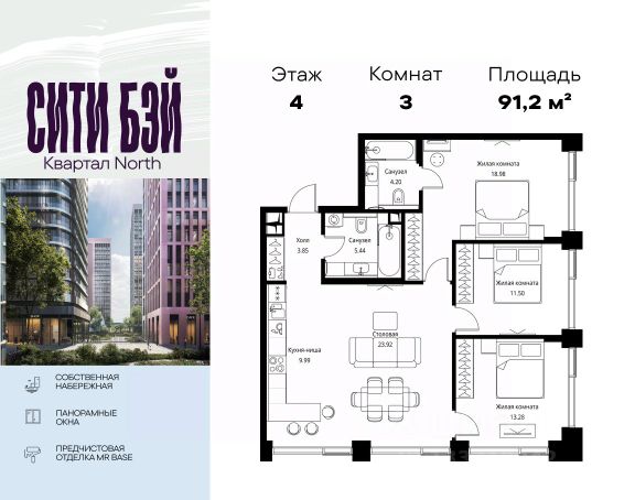 Продаётся 1-комнатная квартира 45 м². В жилом районе Алиа на 4-м этаже 30-этажного дома. Жилой район Алиа — это дома бизнес-класса у слияния Москвы-реки и Сходни. Алиа находится в Покровском-Стрешневе, экологически чистом районе на престижном северо-западе столицы. Район возводится на бывшей территории Тушинского аэрополя, где никогда не было промышленного производства. Алиа — это район разностороннего развития, спроектированный по принципу WORK.LIVE.PLAY.LEARN. Это "15-минутный город", где вся необходимая для комфортной жизни инфраструктура — на расстоянии приятной прогулки. У района удобное расположение: отсюда меньше 10 минут пешком до станций метро "Спартак" и "Тушинская" и всего полчаса на автомобиле до центра города или аэропорта Шереметьево. Архитектурную концепцию Алиа разработало бюро SOM (Skidmore, Owings & Merrill), авторы знаменитой "Бурдж-Халифа". В Алиа больше 140 планировочных решений, среди которых — редкие для Москвы форматы: квартиры с окном в ванной, пентхаус, сити-юниты и таунхаусы. Почти половина территории района отдана под благоустройство. В Алиа три парка: Линейный парк с кафе и магазинами, Центральный парк с амфитеатром, сухим фонтаном и большим плейхабом для детей всех возрастов и Прибрежный парк на собственной набережной, одной из самых длинных в Москве. В каждом урбан-блоке — закрытый внутренний двор с гипоаллергенными растениями и детской площадкой. В лобби каждого жилого корпуса в Алиа оборудована зона ожидания, колясочная, гостевой санузел и лапомойка для домашних животных. За стойкой ресепшена резидентов и их гостей встречает консьерж. Центральное лобби урбан-блока — это стильное общественное пространство с коворкингом, лаундж-зоной и кофе-пойнтом. Это "вторая гостиная" жителей урбан-блока и одно из мест, где формируется комьюнити Алиа. Два ключевых объекта инфраструктуры в Алиа — это спорткомплекс "Чкалов Арена", где представлены 25 видов спорта, и самый большой в стране бизнес-парк класса A, благодаря которому району обеспечено быстрое развитие.