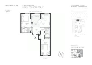 Мастер спальня + 2 отдельных спальни + гостиная с кухней- 35 метров (либо 4 спальни + кухня - 20 метров). Гостиную можно разделить на два помещения, путём установки раздвижной системы (можем установить по вашему желанию), так как в потолке заложена балка.