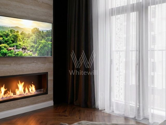 Из панорамного окна в пол, открывается захватывающий вид на реку и роскошную зеленую набережную, самую красивую в городе, речные трамвайчики останавливаются прямо у ЖК.