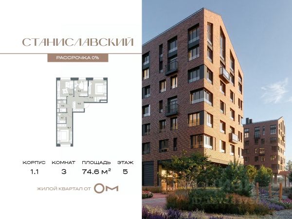 Беспроцентная рассрочка от застройщика. В продаже 3-комнатная квартира квартира площадью 74.6 м², расположенная на 5 этаже в жилом квартале "Станиславский" — проекте бизнес-класса на Новорижском шоссе, всего в 10 минутах от Москвы. В квартире 140 Дом 1 (Корпус 1.1, секция 4) высота потолков — от 3 метров, просторная планировка с гардеробной и большой кухней-гостиной создают комфорт и свободу для воплощения ваших идей. В проекте есть разнообразные отделочные решения, что позволяет реализовать любые дизайнерские предпочтения и планировочные идеи. В "Станиславском" представлены квартиры на любой вкус и для любой семьи: студии, классические и европланировки, а также крупные 4- и 5-комнатные варианты. Все помещения предлагаются без отделки, что дает свободу для создания уникального пространства. Обустроенная территория предусматривает функциональное зонирование: зеленые бульвары, природные тропы, интерактивные зоны, центральная площадь с подиумом для мероприятий и спортивный кластер. Для жителей предусмотрены разнообразные сценарии досуга: тихие зоны для общения, массажные тропы и сад ароматных трав для оздоровления, всесезонные уличные игры и открытые поляны для спортивных и настольных развлечений. Также есть познавательная зона с огородом, скворечниками и микроскопами. В концепции ЖК "Станиславский" особое внимание уделено въездной зоне: здесь создана комфортная площадка для встреч с гостями, обрамленная живой изгородью. Отсюда также открывается доступ к специально оборудованной территории для выгула питомцев — всё продумано для удобства и уюта жителей.