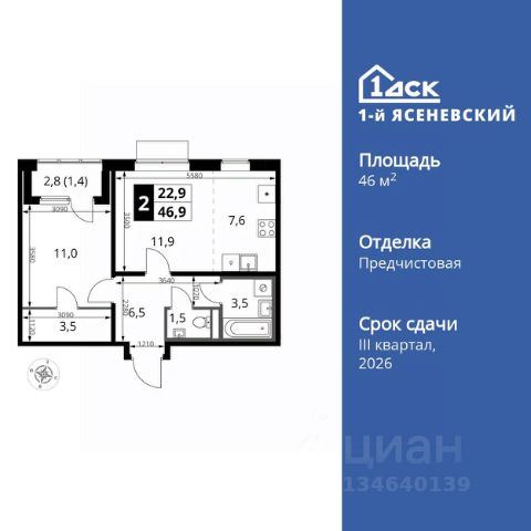 Прямая продажа от застройщика! Жилой Комплекс класса Комфорт Плюс. Продаётся 2-к квартира номер 461 общей площадью 46.9 кв.м. на 5-м этаже 18 этажного здания. Отделка Whitebox. Цена с учётом скидки. Особенности квартиры: - Квартиры рядом с метро - м. Корниловская 9 мин пешком - 63 га лесопарка за окнами - Школа c it-кластером и бассейном. 2 детских сада - Мастер-зона с гардеробной. Просторное место для отдыха и удобного хранения вещей. - Линейная планировка - максимальная функциональность и удобство. - Увеличенное количество окон - дополнительное освещение и свежий воздух. - Раздельный санузел - больше удобства для всех членов семьи. - Евроформат - просторное и удобное жилье с отличной планировкой. - Просторная мягкая зона - комфорт и уют для отдыха всей семьи. - Гардеробная - удобство для хранения и организации вещей. - Лоджия - уютное место для отдыха и тишины. Квартира с предчистовой отделкой (White box). Вам не придется заниматься черновыми и трудоёмкими работы, а чистовую отделку и дизайн - сделайте на свой вкус. Информация о комплексе: В жилом комплексе комфорт-плюс класса "1-го Ясеневского" доступны преимущества двух стилей жизни. Ведь в пешей доступности метро, школа с 25-метровым бассейном и IT-кластером и при этом целых 63 га благоустроенного Троицкого лесопарка под окнами, где так приятно дышать свежим воздухом и слушать пение птиц. Собственная закрытая территория "1-го Ясеневского" представляет собой уютный оазис. Здесь и зеленый освещенный бульвар для прогулок, система велодорожек, маленькая городская площадь, кафе, пекарни и кофе поинты. А еще дворы без машин и многоэтажная парковка. Изюминка территории - фруктовые деревья во дворах и городские сады. "1-й Ясеневский" - всего в 1 км от МКАД, на территории новой Москвы. Жилой комплекс, где есть все необходимое для современного человека. Транспортная доступность: До метро "Корниловская" - 12 минут пешком До метро "Тютчевская" - 25 минут пешком До метро "Теплый стан" - 10 минут на транспорте До метро "Ольховая" - 30 минут на общественном транспорте Личный автотранспорт: Выезд на Калужское шоссе - 500 м МКАД - 1 км Внутренняя инфраструктура: ЖК "1-й Ясеневский" можно назвать идеальным местом для жизни семьи с детьми. Здесь буквально за домом находится Троицкий лесопарк - излюбленное место прогулок молодых родителей. А во внутренних дворах под детские площадки выделены специальные зоны. Они оборудованы всем, что нужно для счастливого детства: современными и максимально безопасными качелями, песочницами и лазалками. Оборудование и игровые сценарии на детских площадках спроектированы вместе с командой детских психологов для правильного развития ребенка и для повышения их интереса. Также рядом с домом два детских садика, один из которых уже построен и школа на 1100 мест. Школу по праву можно назвать образцовым учебным заведением. В ней закладываются основы успешного будущего. Здесь есть класс робототехники, IT-кластер, 25-метровый бассейн и пр