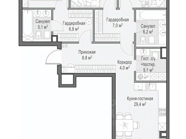 В продаже 4-комнатная квартира квартира в элитном квартале "Тишинский бульвар". Общая площадь квартиры - 151.40 кв.м. Этаж 5 из 7. Корпус К5С4. "Тишинский бульвар" - тихий зелёный элитный квартал на Тишинке, в престижном и комфортном районе центра Москвы. В нём создан уникальный для элитного дома прогулочный бульвар в своём огромном парке 1,9 га. В парке оборудованы зоны для активного и тихого отдыха, крытые галереи, приватные зелёные комнаты, многофункциональная спортивная площадка, воркаут-зона, детская площадка, сухой фонтан, ручей. В пешей доступности Римско-католический кафедральный собор. Всего в полутора километрах от квартала находятся Патриаршие пруды - излюбленное место для летних прогулок, воскресных бранчей и романтических ужинов. Белая площадь расположена ещё ближе - на расстоянии 1,2 километра. Это точка концентрации деловой жизни и модных ресторанов. В "Тишинский бульваре" только для жителей и их гостей создан уникальный для элитного дома прогулочный бульвар в собственном огромном парке площадью 2,1 га, который занимает 70% территории квартала. Бульвар проходит через весь квартал и объединяет в общее пространство три двора: Кленовый, Рябиновый и Ивовый. В парке созданы крытые галереи и приватные зелёные комнаты для отдыха и медитаций в любую погоду. Насыщенное озеленение многолетними растениями с разными периодами цветения сохраняет территорию квартала красивой круглый год. В квартале насыщенная инфраструктура только для жителей, включая Clubhouse. Здесь оборудованы пространства для здорового образа жизни по стандарту FIT LAB: в парке - многофункциональная спортивная площадка, воркаут-зона, место для занятий йогой и медитации; бесплатный фитнес-клуб с бассейном. Для маленьких жителей доступны детская площадка и игровая комната по стандарту KIDS LAB. Дома оснащены самыми полными и лучшими системами.