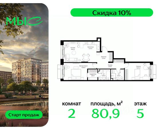Прямая продажа от застройщика. Продаётся 4-комнатная квартира общей площадью 129.49 м² без отделки в премиальном жилом комплексе "МЫС" на 5-м этаже 12 этажного дома. Квартира расположена в корпусе "Сибирь". Проект МЫС — это, прежде всего, идеальное место для семей. В рамках проекта построят государственную школу, два детских сада и дворец спорта площадью 20 000 м2 с термальным комплексом, выплывным бассейном, фитнес-залом, теннисными, сквош и падел кортами и секциями для детей. На территории площадью, сравнимой с тремя парками Зарядье, появятся кафе и рестораны, пруд с набережной, спортивные и детские площадки, скейт-парк, лыжные и веломаршруты. Расположение: - 2 минуты до скоростной трассы М1 и Минского шоссе; - 10 минут до МКАД; - 15 минут до МЦД Лесной Городок - 20 минут до делового центра "Москва-Сити"; - 28 минут до аэропорта "Внуково". Благоустройство: - велосипедные и лыжные маршруты; - собственная набережная и парк; - лаунж-зоны в окружении природы; - беседки у очага; - дворец спорта площадью 20 000 м²; - термальный комплекс с тремя бассейнами; - 4 теннисных и падел-корта; - 6 сквош-кортов; - многофункциональный спортзал; - скейт-парк; - просторная площадь для прогулок с фонтаном; - детский клуб с творческими секциями; - гастро-доминанта; - кафе у пруда, рестораны, ритейл. Окружение - соседство с лесным фондом; - школа на 1250 мест и 2 детских сада на 350 и 255 мест; - Дубковский и Подушкинский леса, парк "Рассказовка", Мещерский парк. Действуют специальные условия при 100% оплате, подробности уточняйте у менеджера в офисе продаж.