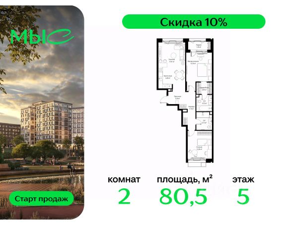 Прямая продажа от застройщика. Продаётся 4-комнатная квартира общей площадью 129.49 м² без отделки в премиальном жилом комплексе "МЫС" на 5-м этаже 12 этажного дома. Квартира расположена в корпусе "Сибирь". Проект МЫС — это, прежде всего, идеальное место для семей. В рамках проекта построят государственную школу, два детских сада и дворец спорта площадью 20 000 м2 с термальным комплексом, выплывным бассейном, фитнес-залом, теннисными, сквош и падел кортами и секциями для детей. На территории площадью, сравнимой с тремя парками Зарядье, появятся кафе и рестораны, пруд с набережной, спортивные и детские площадки, скейт-парк, лыжные и веломаршруты. Расположение: - 2 минуты до скоростной трассы М1 и Минского шоссе; - 10 минут до МКАД; - 15 минут до МЦД Лесной Городок - 20 минут до делового центра "Москва-Сити"; - 28 минут до аэропорта "Внуково". Благоустройство: - велосипедные и лыжные маршруты; - собственная набережная и парк; - лаунж-зоны в окружении природы; - беседки у очага; - дворец спорта площадью 20 000 м²; - термальный комплекс с тремя бассейнами; - 4 теннисных и падел-корта; - 6 сквош-кортов; - многофункциональный спортзал; - скейт-парк; - просторная площадь для прогулок с фонтаном; - детский клуб с творческими секциями; - гастро-доминанта; - кафе у пруда, рестораны, ритейл. Окружение - соседство с лесным фондом; - школа на 1250 мест и 2 детских сада на 350 и 255 мест; - Дубковский и Подушкинский леса, парк "Рассказовка", Мещерский парк. Действуют специальные условия при 100% оплате, подробности уточняйте у менеджера в офисе продаж.