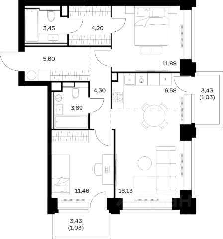 • ✅ Минимальная площадь: 27,2 м²