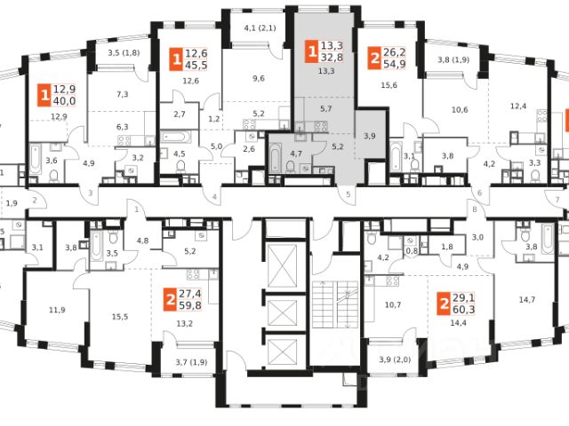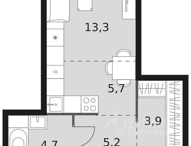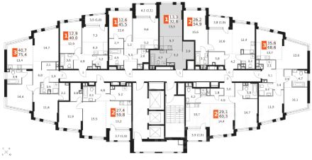 Общая площадь 42,2 м2