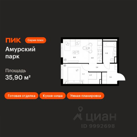 Продаётся просторная 1-комнатная квартира общей площадью 40.3 м² на 5 этаже в новом жилом комплексе "Сиреневый парк", расположенном в Восточном административном округе Москвы на улице Тагильская. Всего 10 минут ходьбы от станции метро "Бульвар Рокоссовского" и одноимённой платформы МЦК. Высококачественное монолитное строительство гарантирует сохранение тепла в доме, а наличие квартир с предчистовой и чистовой отделкой позволяет вам сэкономить время и сразу же переехать в свое жилье после покупки. Благодаря разнообразию планировок вы сможете выбрать идеальный вариант, соответствующий вашим предпочтениям и образу жизни. Предлагаются квартиры: - с просторными кухнями-гостиными, - с нишами для хранения вещей и отдельными гардеробными, - мастер-спальни с собственными санузлами, - большие комнаты с высокими потолками (2,9 м) и с увеличенными безопасными окнами (1,95 м) , которые наполнят ваш дом естественным светом; - с чистовой отделкой по двум дизайн-проектам на выбор; - с остекленными лоджиями и панорамными видами на лес. Каждая деталь в этом доме создана для вашего комфорта: - безбарьерная среда, - бесшумные скоростные лифты, - машиноместа в отапливаемом подземном паркинге и кладовые на -1 этаже с доступом из лифта, - развитая инфраструктура с супермаркетами, кафе, фитнес-клубами, салонами красоты и частным детским садом обеспечивает максимальное удобство жителям. В 300 метрах от ЖК расположен Национальный парк "Лосиный остров". Способы покупки: 100%, Trade-in, Семейная ипотека без наценки, стандартная ипотека. Запишитесь на просмотр в офис продаж и получите свою персональную скидку по акции Назови свою скидку. ЖК "Сиреневый парк" — гармония в деталях, совершенство в каждом моменте. Застройщик проекта - AFI Development.