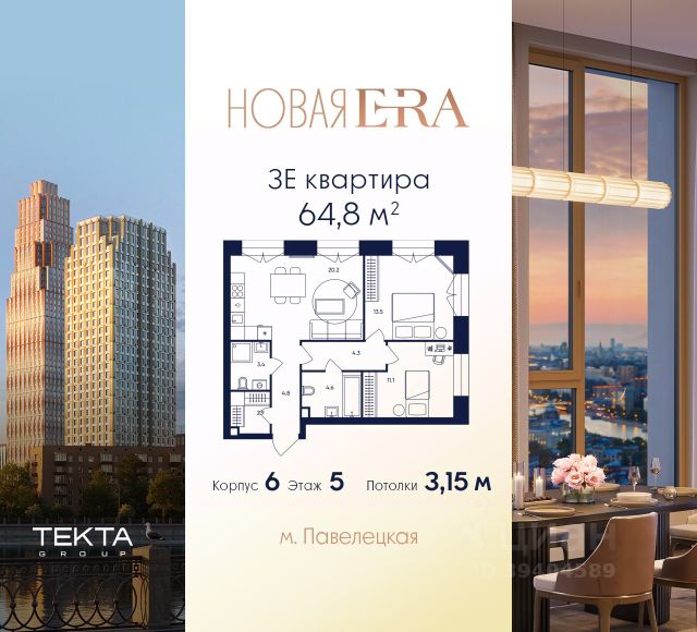 2-к квартира квартира в премиальном комплексе HIGH LIFE на 5-м этаже в 47 этажном здании. Общая площадь 58.7 кв. м. HIGH LIFE - премиальный проект компании PIONEER, расположенный в 5 минутах от Садового кольца, вблизи исторического Замоскворечья. Авторская архитектура от бюро ADM. Панорамные окна и изящные эркеры открывают виды на Кремль, МГУ, Москва-Сити, Дом Музыки и набережные реки. 70% видовых квартир. Инфраструктура и сервис отеля 5*: • Дизайнерские лобби от Jaime Beriestain Studio • Частный кинозал • Библиотека с камином • Двухуровневый двор-парк 2 га с хвойным лесом и террасами • Залы для йоги и занятий спортом • Массажный кабинет, SPA и бьюти-зоны • Консьерж-сервис Технологии и инженерия: • Центральная система кондиционирования • Дополнительная вентиляция помещений • Буферная мусорокамера • Обеззараживание воздуха • Мониторинг качества воды с дополнительной доочисткой • Дополнительная шумоизоляция • Автоматизированная система передачи данных в УК Системы безопасности: • Датчики движения • Круглосуточное наблюдение • Система доступа с распознаванием лиц • Приложение для наблюдения за квартирой • Система пожарного обнаружения • Датчики дыма и протечек За 24 года на рынке недвижимости компания PIONEER реализовала более 30 проектов. Сегодня PIONEER - девелопер премиальной недвижимости с 4 проектами класса премиум и deluxe. Звоните, и мы с удовольствием расскажем все подробности о нашем замечательном проекте и условиях покупки. Продажа от застройщика.