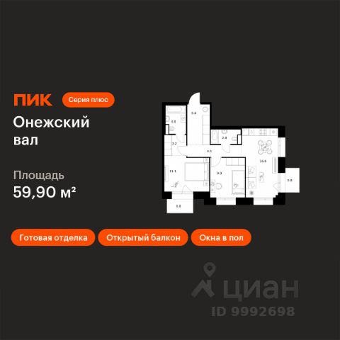 Продается 2-комнатная квартира общей площадью 57.1 кв. метров на 5 этаже жилого комплекса Дмитровское небо. Комплекс возводится в Северном административном округе в районе Западное Дегунино в Ильменском проезде, в 5 минутах ходьбы от метро "Верхние Лихоборы", а автомобилисты могут за пару минут выехать на Ильменский проезд и по нему добраться до Дмитровского шоссе. Проект предусматривает возведение двух элегантных башен бизнес-класса, каждая из которых будет иметь 32 этажа. Башни объединены общей площадкой до 3 этажа, где помещения займут магазины, кафе, салоны красоты, кофейни, банки и прочие организации сферы услуг. Также предусмотрен крытый паркинг на 165 машиномест с пунктом подкачки шин. Дворы Дмитровского неба будут настоящими оазисами без машин, здесь можно будет наслаждаться зеленью и уютом. Будут реализованы детские игровые площадки и спортивные зоны. В шаговой доступности от будущего комплекса находятся - парк имени Святослава Федорова, Дегунинский, Головинский и Ангарские пруды, а также главный ботанический сад Российской академии наук.