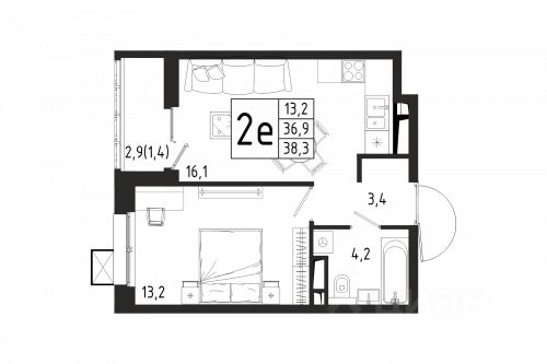 Продаётся 1-комнатная квартира в строящемся доме (Корпус 4), срок сдачи: II-кв. 2027, общей площадью 38.3 кв.м., на 5 этаже. Расположение и транспортная доступность