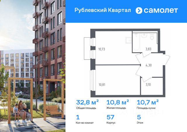 Продается 1-комн. квартира площадью 39,9 кв.м на 5 этаже 19 этажного дома в ЖК "Союзный" от федерального девелопера ГК "Вектор".