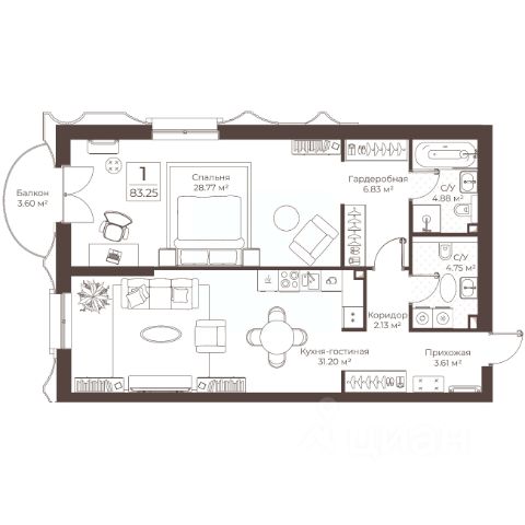 • ✅ Минимальная площадь: 25,5 м²