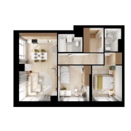 Все подобрано дизайнером. В комнатах есть вся необходимая мебель и техника(вся мебель кроме детской входит в стоимость). Можно сразу въехать и начать жить. Санузел раздельный - это оказалось реально удобно для всей семьи.