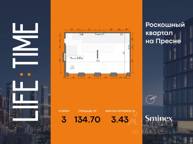 Просторная квартира площадью 151,3 кв. м. Из кухни-гостиной (41,2 кв. м) открывается панорамный вид на красивый двор-парк с ландшафтным дизайном и вечерней подсветкой. Продуманная планировка позволяет разместить три приватные спальни, в одной из которых, примыкающей к мастер-спальне, предусмотрен санузел с окном, что делает ваше личное пространство по-настоящему комфортным. Окна выходят на три стороны. Life Time - роскошный современный квартал на Пресне, в наиболее быстро растущем премиальном районе ЦАО. Его насыщенная инфраструктура и выгодное расположение дарят время для жизни. Вы больше не тратите его на дорогу или ожидание, при этом ни в чём себе не отказывая. На территории предусмотрено всё для комфортной жизни: • двор-парк площадью 1,8 гектара с прудом и фонтанами; • Clubhouse - инфраструктурный центр в отдельном здании с исчерпывающими возможностями для спорта, отдыха и досуга только для жителей; • спортивная инфраструктура на улице и в помещении, в том числе бассейн длиной 25 метров, хот-таб, хаммам, сауна, бьюти-зона; • клубная гостиная с террасой; • всё для развития и досуга детей любого возраста, в том числе детский сад и школа. Life Time находится в центре сложившегося премиального района, в окружении многочисленных парков. Удобная транспортная доступность и прямой выезд на Звенигородское шоссе позволяют без проблем добраться до Садового кольца и Москва-Сити. Архитектурный стиль квартала - роскошный минимализм. Дома десятилетиями будут выглядеть современно.
