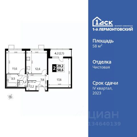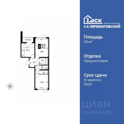 Общая площадь: 55.00 м.кв., Жилая площадь: 27.00 м.кв., Площадь кухни: 19.00 м.кв.