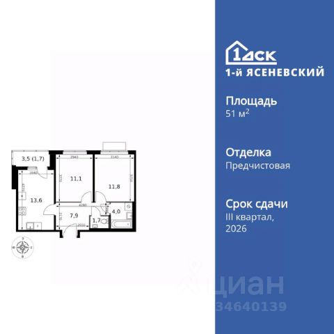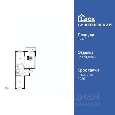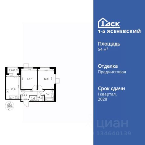 Прямая продажа от застройщика! Жилой Комплекс класса Комфорт Плюс. Продаётся 2-к квартира номер 492 общей площадью 54.5 кв.м. на 6-м этаже 18 этажного здания. Предчистовая отделка. Цена с учётом скидки. Особенности квартиры: - Квартиры рядом с метро - м. Корниловская 9 мин пешком - 63 га лесопарка за окнами - Школа c ИТ-кластером и бассейном. 2 детских сада - Организуем показ в удобное для вас время! - Угловая планировка - больше пространства для ваших идей. - Увеличенное количество окон - дополнительное освещение и свежий воздух. - Раздельный санузел - больше удобства для всех членов семьи. - Можно оборудовать рабочее место - комфорт для работы и учёбы. - Просторная кухня - место для семейных ужинов и кулинарных экспериментов. - Кладовая - дополнительное пространство для хранения. - Лоджия - уютное место для отдыха и тишины. Квартира с предчистовой отделкой. Вам не придется заниматься черновыми и трудоёмкими работы, а чистовую отделку и дизайн - сделайте на свой вкус. Информация о комплексе: ЖК "1-й Ясеневский": преимущества городской инфраструктуры и природы. Пешая доступность к метро, школе с бассейном и ИТ-кластеру, а также 63 га Троицкого лесопарка под окнами. Закрытая территория с бульварами, велодорожками, кафе и дворами без машин. Фруктовые деревья и городские сады создают уникальную атмосферу. Всего в 1 км от МКАД - идеальный баланс для современной жизни. Транспортная доступность: До метро "Корниловская" - 12 минут пешком До метро "Тютчевская" - 25 минут пешком До метро "Теплый стан" - 10 минут на транспорте До метро "Ольховая" - 30 минут на общественном транспорте Личный автотранспорт: Выезд на Калужское шоссе - 500 м МКАД - 1 км Внутренняя инфраструктура: ЖК "1-й Ясеневский" - идеальное место для семей с детьми. Рядом Троицкий лесопарк для прогулок, а во дворах - современные детские площадки, разработанные с участием психологов. В шаговой доступности два детских сада и школа на 1100 мест с ИТ-кластером, бассейном и классами робототехники. Всё для счастливого детства и успешного будущего. Квартира с предчистовой отделкой - ваш дизайн без черновых работ
