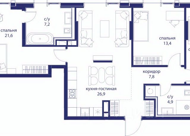 В продаже 3-к квартира от застройщика. Общая площадь 102.70, жилая 52.90, кухня 26.9. Квартира расположена на 6 этаже жилого квартала "Событие-6", корпус 1, Секция 3. Квартира с чистовой отделкой. Срок сдачи: 4 кв. 2029 года. СОБЫТИЕ.6 — финальный дом парк-квартала СОБЫТИЕ на Мосфильмовской. Переезжайте в уже сформированный квартал с готовой инфраструктурой и парком! Премиальный жилой комплекс в престижном районе Москвы предлагает стильную архитектуру, продуманное благоустройство и великолепно разнообразие общественных пространств. Свой парк прямо возле дома! Архитектура Архитектура СОБЫТИЯ.6 выполнена в ультрасовременном стиле московским бюро Atrium на основе дизайн-кода британских архитекторов LDA Design и UHA London. Дом отличает оригинальная геометрия фасадов, большое остекление и высокие лобби (до 6,2 м) с авторской мебелью и светильниками. Расположение Мосфильмовская улица (Раменки) — один из престижных районов Москвы. Близость к историческому и деловому центру, природным зонам Запада столицы. Транспортная доступность: • 10 мин до Москва-Сити и ТТК; • 15 мин до Садового кольца; • 25 мин до аэропорта Внуково; • 7-10 мин до станций метро "Аминьевская" и "Мичуринский проспект". Инфраструктура: • парк "Событие" (12 га, финалист конкурса Правительства Москвы) с беговыми (1,5 км) и велодорожками (2,7 км), экотропой (1,6 км), площадками, лекторием; • школа, детский сад, магазины, салоны красоты, рестораны (к моменту заселения); • мультидвор с игровыми и спортивными площадками, мини-бульваром; • общественная терраса на 10-м этаже (коворкинг, лаунж); • Закрытые общественные пространства: детская комната, спортивный зал, коворкинг, лаунж-зоны. Паркинг 256 мест для жителей (48 — для электромобилей), 24 гостевых (5 — для электромобилей), мойки колес, кладовые, зоны для велосипедов. Окружение Парки и заповедники (Воробьёвы горы, Матвеевский лес и др.), МГУ, театр им. Н. И. Сац, стадион "Лужники". Безопасность Видеонаблюдение, контроль доступа, видеодомофоны, консьерж-сервис 24/7, системы пожарной безопасности и мультисервисная оптическая сеть.