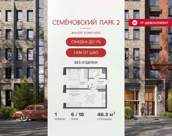 Ипотека для каждого! Полная стоимость кредита от 12,380% до 18,537%. Ставка от 0,11% в АО "Альфа-Банк", ген. лицензия ЦБ РФ 1326 от 16.01.2015. Ставка фиксируется на первые 12 месяцев, далее полная стоимость кредита от 22,022% до 24,599% ставка 21,59%. Первоначальный взнос — от 20,1% от стоимости квартиры. Срок кредитования — от 4 до 30 лет. Ипотека на весь срок! Полная стоимость кредита от 23,396% до 26,058% со ставкой 14,5%! Первоначальный взнос —от 20,01% от стоимости квартиры. Срок кредитования — от 3 до 30 лет. АО "Банк ДОМ.РФ" универсальная лицензия Банка России 2312 от 19.12.2018. Скидка 7% при покупке квартиры! Цена указана с учетом максимального размера скидки. Продается 2-к квартира 60,6 кв.м. в ЖК "Семеновский парк 2" на 6-м этаже 26 этажного дома. Компания "РГ-Девелопмент" предоставляет скидку на квартиры в жилом комплексе. Акция действительна до 15.04.2026 включительно. Чтобы воспользоваться предложением, необходимо подписать договор на приобретение недвижимости до 15.04.2026 включительно. Компания "РГ-Девелопмент" вошла в ТОП-10 девелоперов по объёму введённого жилья в "Старой Москве" по итогам 2025 года. Прямая продажа от застройщика! Квартиры без отделки. Срок сдачи корпуса - 1 кв. 2026 г., корпус сдан. Выдача ключей. ЖК "Семеновский парк 2" - это идеальное место для того, чтобы стать вашим домом. Проект расположен в исторической части Москвы вблизи Измайловского лесопарка, в 1 км от ЦАО. 4 станции метро отделяют вас от Красной площади и 15 минут на автомобиле - от Садового кольца.