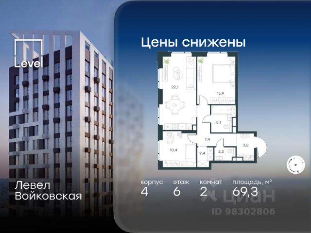 Цена указана с учётом скидки при 100%-й оплате, несубсидированной ипотеке, рассрочке (кроме программы "Рассрочка 0%"). Продается студия площадью 29.40 кв. м без отделки. Квартира находится на 6 этаже 20-этажного корпуса 5, в новом жилом комплексе бизнес-класса Левел Войковская, расположенном рядом с живописным заповедником "Покровское-Стрешнево" (застройщик - компания Level Group/Левел групп). Прекрасная транспортная доступность - 7 мин. пешком до станции МЦК "Балтийская"; - 15 мин. пешком до станции метро "Войковская"; - 8 мин. на машине до ТТК; - 15 мин. на машине до центра Москвы; - 20 мин. на машине до Москва-Сити. Продуманный архитектурный проект - стильная архитектура от мастерской Фефелова В. В.; - панорамные виды на парки, Химкинское водохранилище и Останкинскую башню; - лобби с высотой потолков до 6,45 метров; - более 20 видов планировок, включая редкие форматы квартир с террасой и увеличенной высотой потолков до 5,42 метров; - 2 варианта дизайнерской отделки в корпусе 4 как дополнительная опция к предчистовой отделке: стиль Модерн в светлых холодных тонах и стиль Классик в нейтральной бежевой гамме. Квартиры в корпусах 3 и 5 сдаются без отделки. Расположение Жилой комплекс Левел Войковская строится в престижном Северном округе Москвы, где развитая инфраструктура и живописная природа переплетаются в единый ансамбль. Войковский район окружают парки и набережные. В шаговой доступности - парк "Покровское-Стрешнево", не более 15-ти минут на велосипеде занимает путь до Тимирязевского парка и 9-ти минут до парка усадьбы Михалково. Рядом более 60 школ, 75 дошкольных учреждений, 17 государственных и 6 частных вузов, 25 супермаркетов, 4 торговых центра, среди которых ТЦ "Метрополис" и ТЦ "Авиапарк". Внутренняя инфраструктура На территории жилого комплекса предусмотрены коммерческие помещения: кафе, ресторан, пекарня и другие сервисы на первых этажах корпусов. Для жителей будет доступен отапливаемый подземный паркинг на 244 машино-места с доступом с любого этажа на лифте. На территории паркинга будет расположено 125 кладовых помещений для хранения сезонного инвентаря. Лобби и благоустройство Дизайн лобби жилого комплекса Левел Войковская создан совместно с бюро "Бланк Архитектс" (Blank Architects). Теплая цветовая гамма, ресепшен, зоны ожидания, лапомойки и гостевые санузлы - каждая деталь превращает лобби в комфортное продолжение вашего дома. 1,15 га площади в первых двух этапах строительства отведено под приватный внутренний двор, который спроектирован совместно с бюро "Правда". Детские площадки для всех возрастов, спортивные пространства для йоги, уличных тренировок и петанка, уютные зоны для тихого отдыха или работы. Здесь утро начинается с вдохновения, а вечер наполнен приятными моментами. Лифты Комфортное перемещение внутри жилого комплекса обеспечат надёжные лифты с доступом в паркинг с жилых этажей. В каждом корпусе предусмотрено по 3 грузопассажирских лифта.