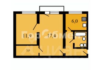 Общая площадь — 62 кв. м, все комнаты изолированные, жилая площадь составляет- 44,1 кв. м, площадь кухни — 6,5 кв. м., высота потолков — 2,5 м. Окна выходят во двор.