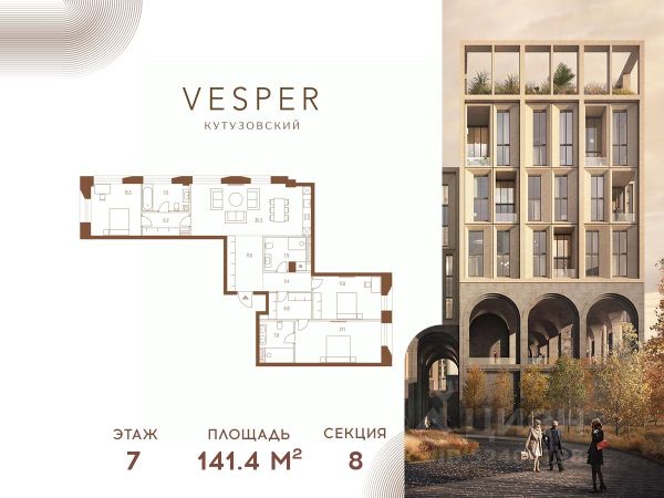 Продается квартира 3-спальнями без отделки, в корпусе 9.1 общей площадью 133.1 кв.м. на 7 этаже. Знаковый проект для ценителей комфортной городской среды от Vesper. Квартал площадью 3,7 га расположен на Кутузовском проспекте и воплощает новую концепцию идеально сбалансированного места для жизни. Благодаря удачному расположению и развитой транспортной инфраструктуре отсюда одинаково быстро добираться как до Кремля и ММДЦ "Москва-Сити", так и до Рублево-Успенского шоссе. Планировочные решения проекта Vesper Кутузовский включают широкую линейку жилых форматов и подойдут для самых взыскательных резидентов: помимо базовых вариантов квартир доступны эксклюзивные лоты — пентхаусы с террасами и квартиры с патио. Продуманная приватная инфраструктура, собственный ландшафтный парк, близость магазинов и ресторанов делают Vesper Кутузовский достойным выбором для самых взыскательных клиентов: как для тех, кто любит уединение, так и для резидентов, которые стремятся быть в центре событий. Концепция жилого квартала разработана ODA Architecture. Разная высотность 10 строений, плавные линии и главный паттерн из арок, размер которых меняется в зависимости от дома и этажа, создают визуальный ритм квартала и делают его легким и элегантным, наполненным солнечным светом и воздухом.