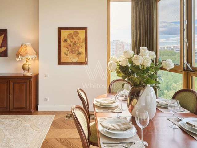 Квартира с 2 спальнями общей площадью 105 м² в комплексе бизнес-класса Shome. Квартира с дизайнерской отделкой расположена на 7 этаже. Выполнен ремонт в неоклассическом стиле, интерьер украшают декоративные молдинги, карнизы и лепные детали. Квартира полностью меблирована и укомплектована бытовой техникой. Функциональная планировка включает просторную кухню-гостиную с обеденной зоной и декоративным камином, мастер-спальню с собственной ванной комнатой и гардеробной, вторую спальню со своим санузлом, постирочную и прихожую. Из окон открываются виды на Малую Филёвскую улицу и благоустроенную территорию комплекса. За дополнительную плату возможно приобрести 2 машино-места в подземном паркинге. Главное о доме. Два 24-этажных корпуса Aqua и Bloom с ночной подсветкой фасадов стоят на границе с парком. Вы выходите из своего двора прямо к Мазиловскому пруду для вечерней прогулки. Ваша машина ждёт на трёхуровневом подземном паркинге со скоростными лифтами, а вы поднимаетесь в квартиру, из окон которой виден изгиб Живописного моста или шпиль МГУ. Дети играют на площадках во дворе, а вы можете позавтракать в кофейне на первом этаже. Главное о локации. Фили-Давыдково — это запах сосен из Филёвского парка и вечерние огни "Москва-Сити" за Живописным мостом. Вы начинаете утро с пробежки по тропинкам у Мазиловского пруда, а за продуктами заходите в "ВкусВилл" у метро "Кунцевская", до которого идёте 8 минут. Дети учатся в школе 2101, а вы выезжаете на Рублёвское шоссе и за 11 добираетесь на машине до ТТК. Это район, где тишина старых парков соседствует с отличной транспортной доступностью. Комментарий эксперта. Меня зовут Софья Терзян — брокер компании Whitewill. Я отвечаю за продажу этого лота. Свяжитесь со мной, чтобы получить расширенную презентацию, больше фотографий или договориться о просмотре. Могу провести экскурсию по локации и познакомить вас с этим домом. ID 322 055.