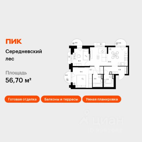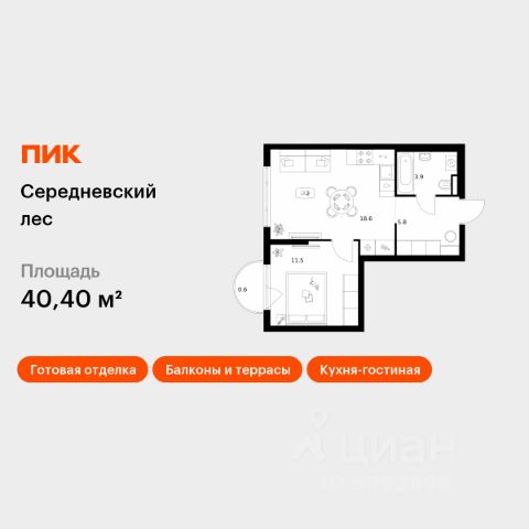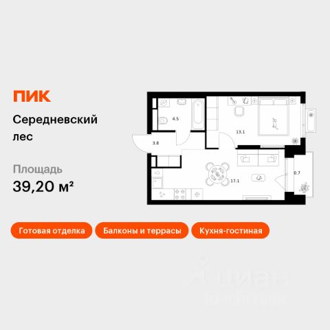 Продаётся 1-комн. квартира площадью 34,3 кв.м на 7 этаже 16 этажного дома (Корпус 2.1.5, Секция 5) проекта ПИК Середневский лес. Светлый просторный подъезд на уровне земли, функциональная планировка, большие окна, c отделкой. В 10 минутах на автомобиле находится станция метро "Внуково", а в 15 минутах — станции "Филатов Луг" и "Саларьево". От них до центра Москвы всего 3540 минут. На рейсовом автобусе от жилого квартала до метро "Филатов Луг" — 20 минут. На территории "Середневского леса" появилось общественное пространство с игровыми площадками, местами для отдыха, пешеходными маршрутами и велопарковкой — для прогулок, отдыха и встреч жителей квартала. Также внутри жилого квартала уже открыта школа на 1100 мест и детский сад для 325 малышей. В дальнейшем откроется ещё один сад для 340 детей. Артикул 1038272 (Застройщик ООО "Специализированный застройщик Середнево")