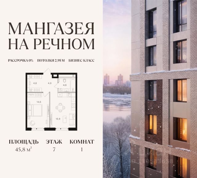 В продаже 2-к квартира площадью 70.7 м2. Функциональная планировка, кухня-гостиная, просторные санузел и гардеробная. Квартира расположена на 7-м этаже 24-этажного дома. Стоимость указана с учетом скидки 10%, экономия составит 3 938 697 рублей! Стоимость квартиры без скидки 39 386 970 рублей. Условия покупки со скидкой 10%: - 100% оплата - Базовая ипотека Условия покупки без скидки: - Семейная ипотека от 3,5% на весь срок - Ипотека 0,11% на первый год - Рассрочка без процентов - Trade-in с проживанием на время строительства дома "Мангазея на Речном" расположена рядом с набережной, парками и территорией Северного речного вокзала. Первая очередь проекта два дома 12 и 24 этажа с приватным двором, ландшафтным благоустройством и инфраструктурой только для резидентов: кинозал, коворкинг, переговорные, зоны отдыха и комнаты для занятия фитнесом. Инфраструктура: - Школа на 1000 мест и детский сад - Дом Wellness со СПА-центром, фитнесом и массажными кабинетами и два бассейна, один из них под открытым небом - Два бассейна, один из них под открытым небом - Прогулочная набережная протяженностью 3,2 км с террасами - Зона воркаута и детские площадки - Ретейл, кафе, рестораны и бутики на первых этажах - Причалы для остановки яхт и небольших катеров Транспортная доступность: - 10 минут пешком до м. Речной вокзал - 15 минут пешком до м. Беломорская - 15 минут на машине до Белорусского вокзала - 17 минут на машине до Садового Кольца В первых корпусах "Мангазеи на Речном" представлены квартиры бизнес-класса с мастер-спальнями, террасами и видами на парк. Эксклюзивные форматы лоты с увеличенной высотой потолков и собственными выходом на благоустроенную территорию.