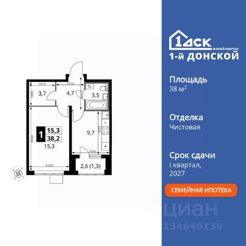 Прямая продажа от застройщика! Жилой Комплекс класса Комфорт Плюс. Продаётся 1-к квартира номер 784 общей площадью 33.9 кв.м. на 7-м этаже 24 этажного здания. Отделка Whitebox. Особенности квартиры: - МЦД-5 в пешей доступности - Квартал с собственной набережной - Свои 2 детских сада и школа - Мастер-зона с гардеробной. Просторное место для отдыха и удобного хранения вещей. - Линейная планировка - максимальная функциональность и удобство. - Гардеробная - удобство для хранения и организации вещей. - Лоджия - уютное место для отдыха и тишины. Квартира с предчистовой отделкой (White box). Вам не придется заниматься черновыми и трудоёмкими работы, а чистовую отделку и дизайн - сделайте на свой вкус. Информация о комплексе: Комплекс 1-й Донской расположен в 7 км от МКАД по трассе М-4 Дон. В нем сочетаются все плюсы комфортной городской среды и природного окружения. В проекте достаточно большой процент квартир, выходящих на 2-3 стороны света. Секции-маяки формируют у зданий визуальную L-форму, что придает застройке структуру и ритмику объемов. На ощущение динамики работает и разная этажность зданий. Теплая цветовая палитра фасадов отражает природу Дона. Вечерами дома преображаются благодаря архитектурной подсветке, выгодно выделяясь на городском фоне. Природа оказывает положительное влияние на человека на всех уровнях восприятия: через зрение, запахи, звуки, тактильные ощущения. Неподалеку от ЖК Первый Донской: Ермолинский парк, Видновский лесопарк, Жуковский парк Транспортная доступность: Комплекс удобно расположен в 7 км от МКАД по трассе М-4 Дон (через Видное). Расстояние до Каширского шоссе составляет 12 км. Добраться до метро и центра Москвы позволяет развитая сеть маршрутов общественного наземного транспорта. Действующая ж/д станция Калинина Павелецкого направления в 15-17 минутах ходьбы (МЦД-5 в 2025-2026 гг). Внутренняя инфраструктура: Проект 1-й Донской соседствует с бурно развивающимся районом, основная инфраструктура которого уже сложилась. В строительстве современных жилых комплексов в округе есть свои плюсы: здесь формируется продуманная и комфортная городская среда. Что касается внутренней инфраструктуры, на территории квартала будут расположены собственные муниципальные 2 детских садика и школа, которые помогут совместить приятное с полезным. Территория комплекса пронизана целой сетью живописных пешеходных маршрутов, позволяющих попасть в любой уголок района. Основные пути, как водится, "торговые". Они проходят вдоль магазинов, кафе и других представителей коммерции и отделяются от проезжей части зеленой "фито" - стеной. Среди крупных социальных объектов предусмотрены своя поликлиника и торговый центр с примыкающей площадью для общественных мероприятий. Уют начинается с продуманного подъезда. Сквозные подъезды наполнены светом благодаря сплошному остеклению. Вход в них есть и с улицы, и со двора.